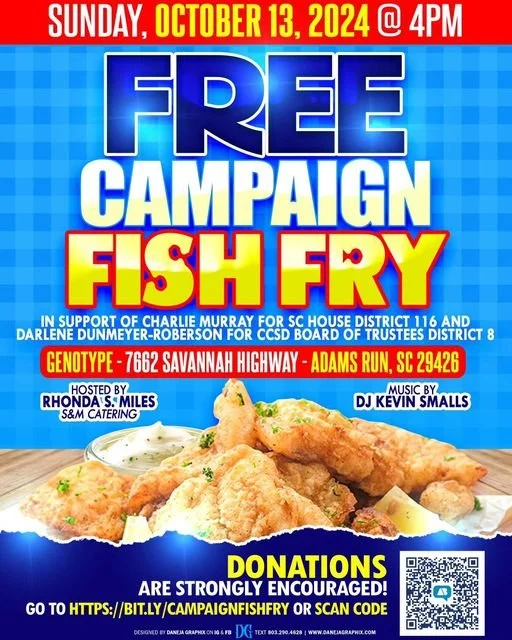 Join us Sunday, October 13th for a FREE Campaign Fish Fry! All are welcome. Your donations and support will help me reach the finish line!